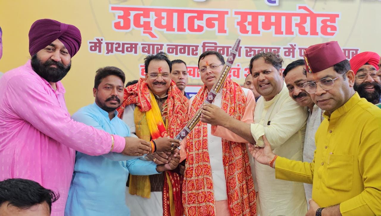 नगर निगम सभागार में करोड़ों की योजनाओं का लोकार्पण और शिलान्यास करने पहुंचे। मुख्यमंत्री पुष्कर सिंह धामी को शहर में पधारने पर भाजपा प्रदेश मंत्री विकास शर्मा ने तलवार भेंट कर अभिनंदन किया। इस दौरान भाजपा प्रदेश मंत्री विकास शर्मा ने मुख्यमंत्री पुष्कर सिंह धामी द्वारा रूद्रपुर में सड़कों के निर्माण के लिए दो करोड़ रूपये देने को कहा।