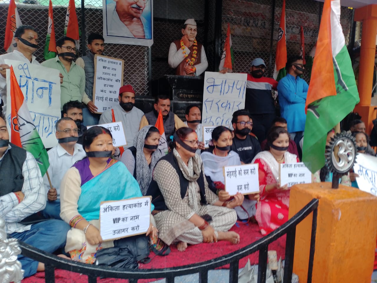 आज जिला कांग्रेस पार्टी के द्वारा सुमन चौक उत्तरकाशी में गांधी जी की प्रतिमा के सम्मुख राहुल गाँधी जी के समर्थन में बढ़ती महंगाई, अंकिता हत्या कांड, vip कौन एवं भर्ती घोटाले के खिलाफ भाजपा सरकार की तानाशाही सरकार के खिलाफ मौन सत्याग्रह धरना प्रदर्शन किया गया उक्त बैठक हुई।